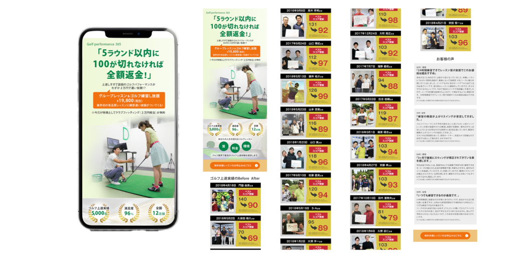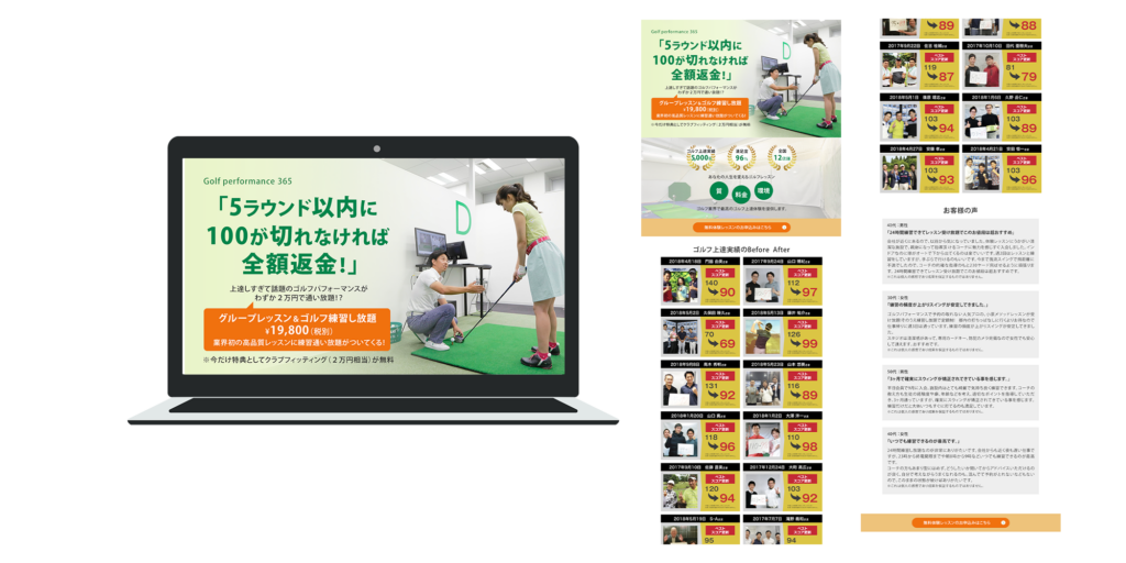 ゴルフ練習スタジオへの誘導LP(ランディングページ)