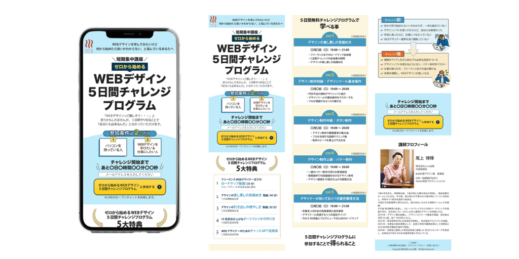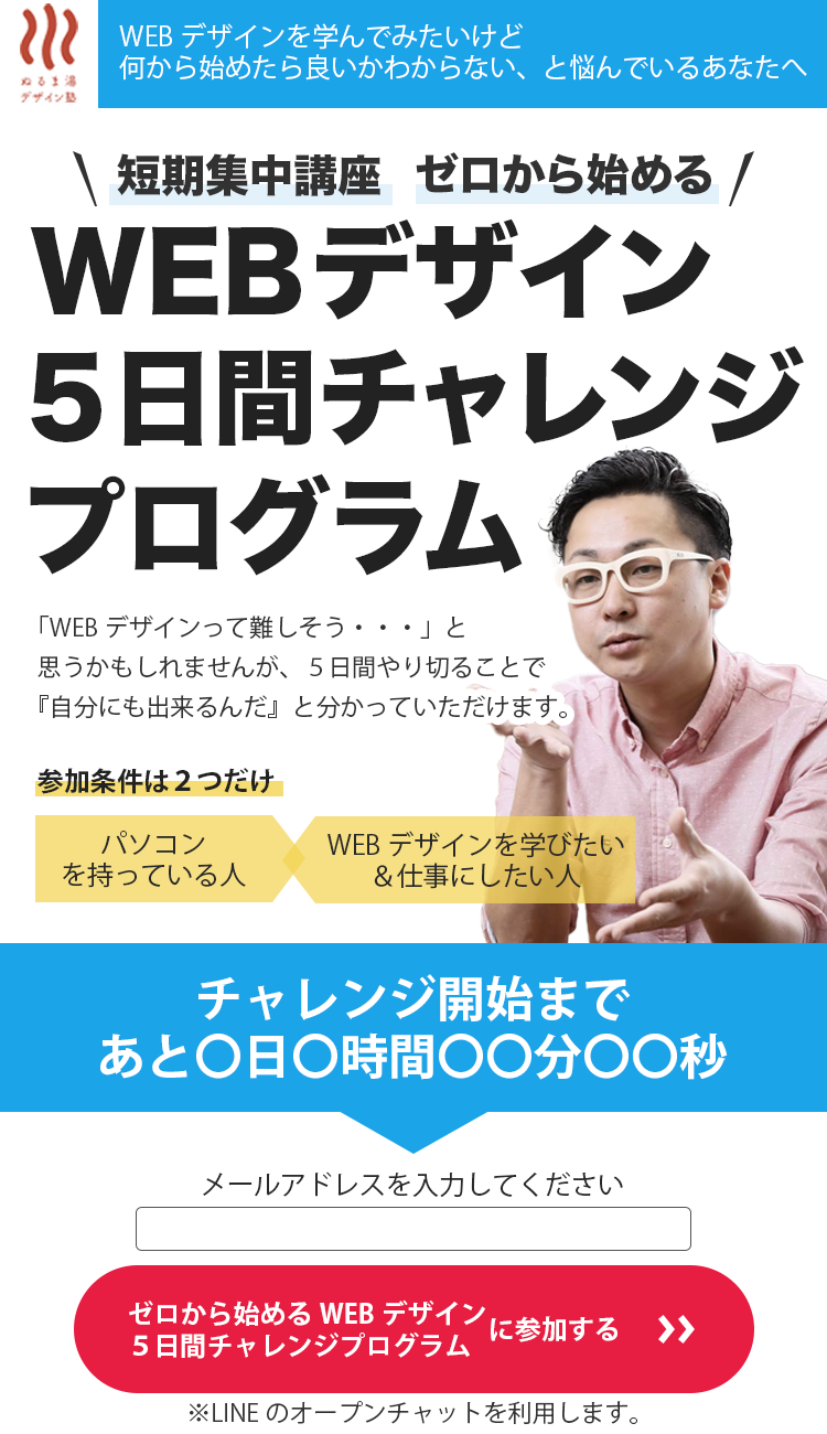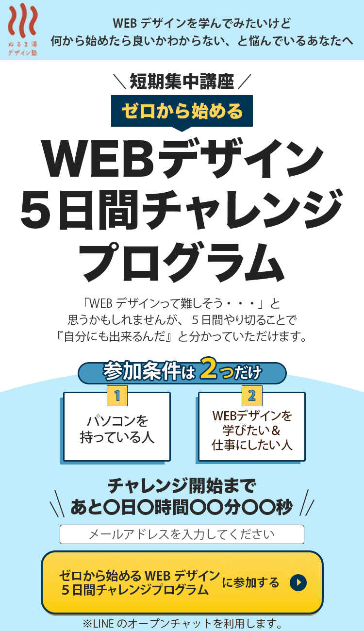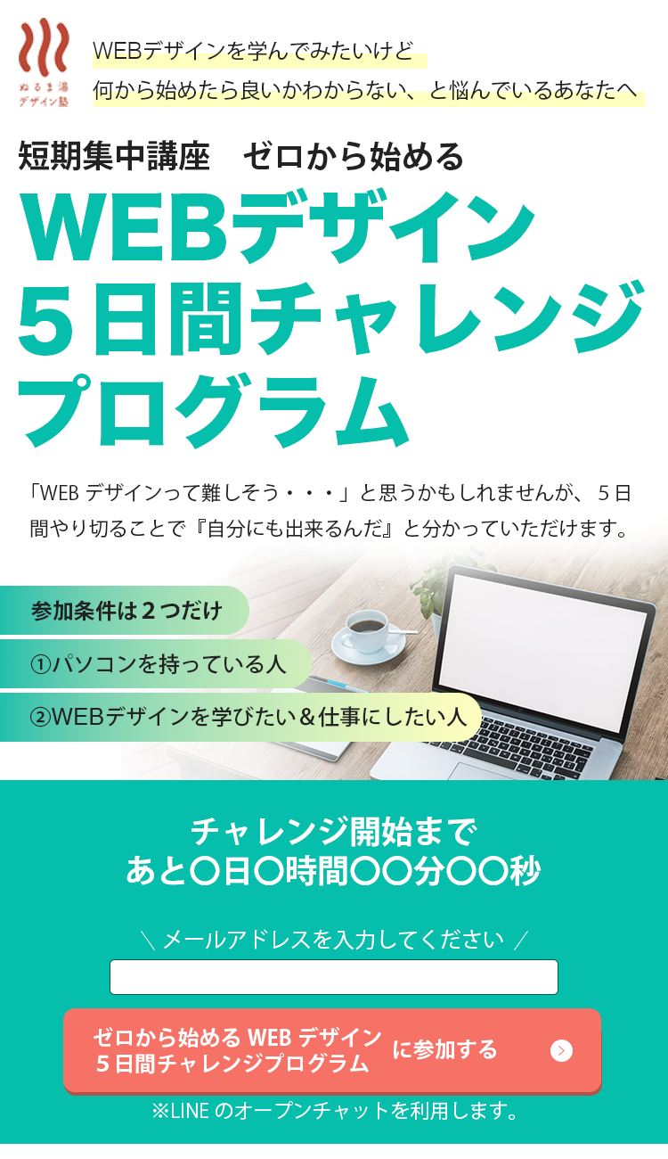 無料のWEBデザイン5日間チャレンジに参加してもらうこと。チャレンジ後には、最後にTHE GOALの講座案内もする予定です。